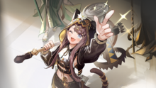 | 萌点 | 猫娘、猫耳、猫眼、猫嘴、猫尾、大小姐、虎牙、齐刘海、考古学家、姐姐、元气、无铁炮、反差萌、颜艺、锤、头花、兜帽、露脐装、短裤、腿环、凉鞋、笨蛋 |