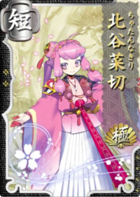 | “ | はいさい! おれは北谷菜切だよ。もとは料理包丁だって説もあって、こんな名前なのさー! | ” |