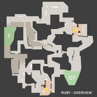 红宝石酒镇(de_ruby),这张地图似乎以一个位于西班牙的小镇为背景,恐怖分子必须摧毁两个储存了烈性爆炸物的地点中的一个,反恐精英们必须保护爆炸物不被破坏。