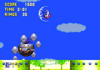第二个中场BOSS:Flying Eggman 飞行蛋头(又被称为:Egg Bouncer 蛋之弹跳者(日语:フライングエッグマン)