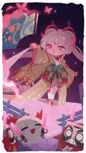 在一个美丽而残酷的夜晚,在即将失去生命的时候,她与传说合二为一,成为了大妖怪——不知火。