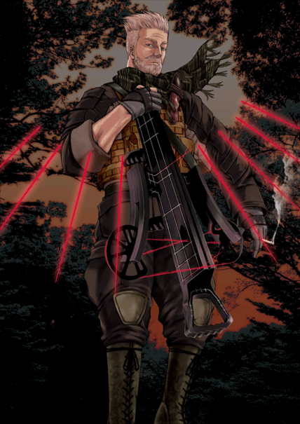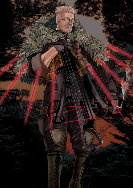 大叔、眼镜、眼罩、爸爸、猎人、弓箭、抽烟