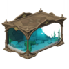 孔雀木「万角」货柜 | 常见于稻妻商铺的货柜,由深色漆面的「孔雀木」制成。 这种货柜的侧框和背板设有大量拼接的榫槽,每块主要格板都能拆卸重组,从而达成自由排布货柜窗格的效果。 稻妻的大多商铺的面积并不充裕,因此,这种能够更改窗格,充当「万种角色」的货柜相当实用。 |