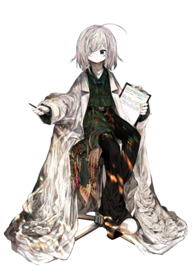 一位有着浅紫色头发、异色瞳色的意大利医生。身材娇小只有136身着巨大的白大褂,女扮男装,是无性别骄傲者(Agender),因此第三人称统一改为“他”。虽然是医生,活动内容却以绘画和哲思辩驳为主。