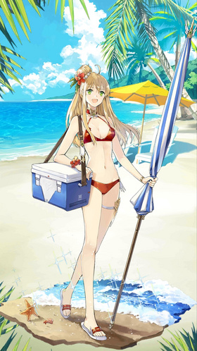 | 冈尼尔一直是天寒地冻的,这样的服装实在罕见,恩~在高温下很便于战斗呢,不错。(夏日海滩派对限定) |