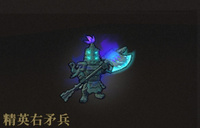 身披重甲的执戟兵俑,被妖气唤醒后,忘记了门前值守的责任。魔化后的右矛兵,似乎能熟练地运用蓄力冲锋以冲向远处的敌人并挥戟打击。