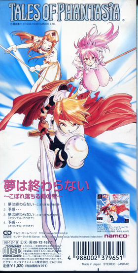 《夢は終わらない 〜こぼれ落ちる時の雫〜》是NAMCO制作的游戏《幻想传说》的主题曲兼片头曲。该游戏曾发售于多个平台,其中SFC/GBA版游戏的本曲由吉田由香里演唱,PS/PSP版游戏的本曲由よーみ[3](YO MI)演唱。