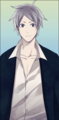 幼年时的立绘为黑色剪影,因此无法辨别衣着(不过常被同人爱好者画成穿浅色和服),但可以看见他和隐藏线后段时一样,戴着狐狸面具。