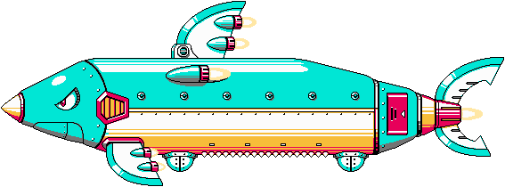 巨型鲨鱼型机器人,搭载着许多武器,分为尾部、身体和头部进行战斗。