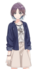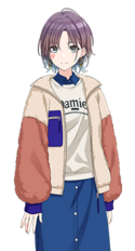 - 拥有朗丽外表,散发着充满透明感的气场的高中二年生,与noctchill的同伴樋口圆香、福丸小糸、市川雏菜互为儿时玩伴,担任组合的Center。