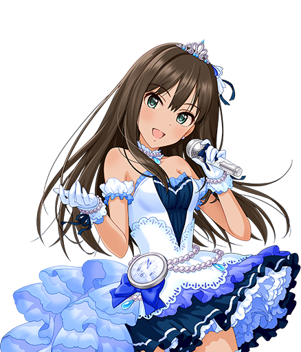 SRare[New Generation]:2012年1月13日白金扭蛋追加的卡片。虽然从名字上来看应该是和岛村卯月、本田未央的第一张SR属同系卡片,但从服装上看是和神谷奈绪、北条加莲的第一张SR属同系。官方这么早就想到Perfect 5th了?