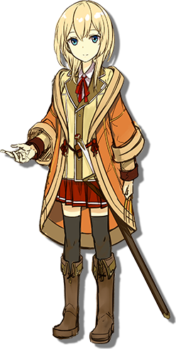 应考王立第二学园的入学考试,在应考前一天,因佩剑折断,请求好友阿尔玛找新佩剑,与马蒂亚斯相遇,开始单恋马蒂亚斯。