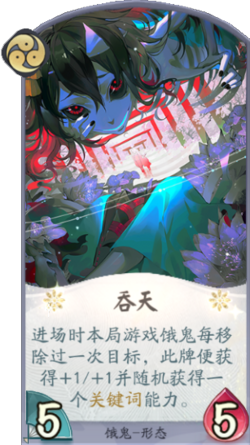 通过移除形态、幻境、牌库卡牌等目标,饿鬼可以获得相应的效果或强化。随着移除的目标越来越多,“吞天”的饿鬼也将越来越强大。