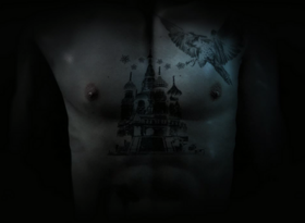 从“攀岩运动”关卡的开场动画中可以看到艾伦的腹部有一个大面积的城堡图案的纹身。
