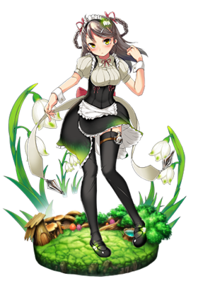 私はスノーフレーク。エーデルワイス様に仕えるメイド。 花言葉は「慈愛」。 だから戦いもするけど、掃除とか、洗濯とか、 とにかく、ご奉仕している時が、一番幸せ。 |