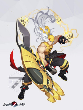 外形:一头放荡不羁的银色长发,犀利的金色小眼睛,秀肌肉必备的黄色小背心,中二气质满满的灯笼小脚裤。头上戴着黄色的小头巾,闪电的图案暗示了虎彻的力量属性。