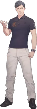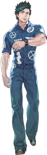 体格健壮,没有被蓝色工作服盖住的脖子和手腕也相当粗壮,比起博士生倒是更像体育生。身高在参赛成员里很突出,看着就非常可靠。狂野的黑色短发配上显得意志坚定的眉毛,从他精悍的外表也能看出他耿直的本性。不过,也经常因为问题发言而招致女性的反感。