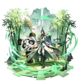 一回合内,变身为萌将熊猫,受到攻击时,炸伤对手以及对手相邻单位的精灵,伤害值基于自身的血量上限(首次炸伤效果最高,之后衰减),并在下次出手后变回正常形态 |