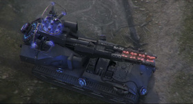 - 覆盖坦克四周的能量冲击。可以弹震所有冲击区域内的敌方坦克,并对靠近自身的敌方坦克造成600伤害。可以穿透所有障碍物并重置受损坦克的发电机过载点数。